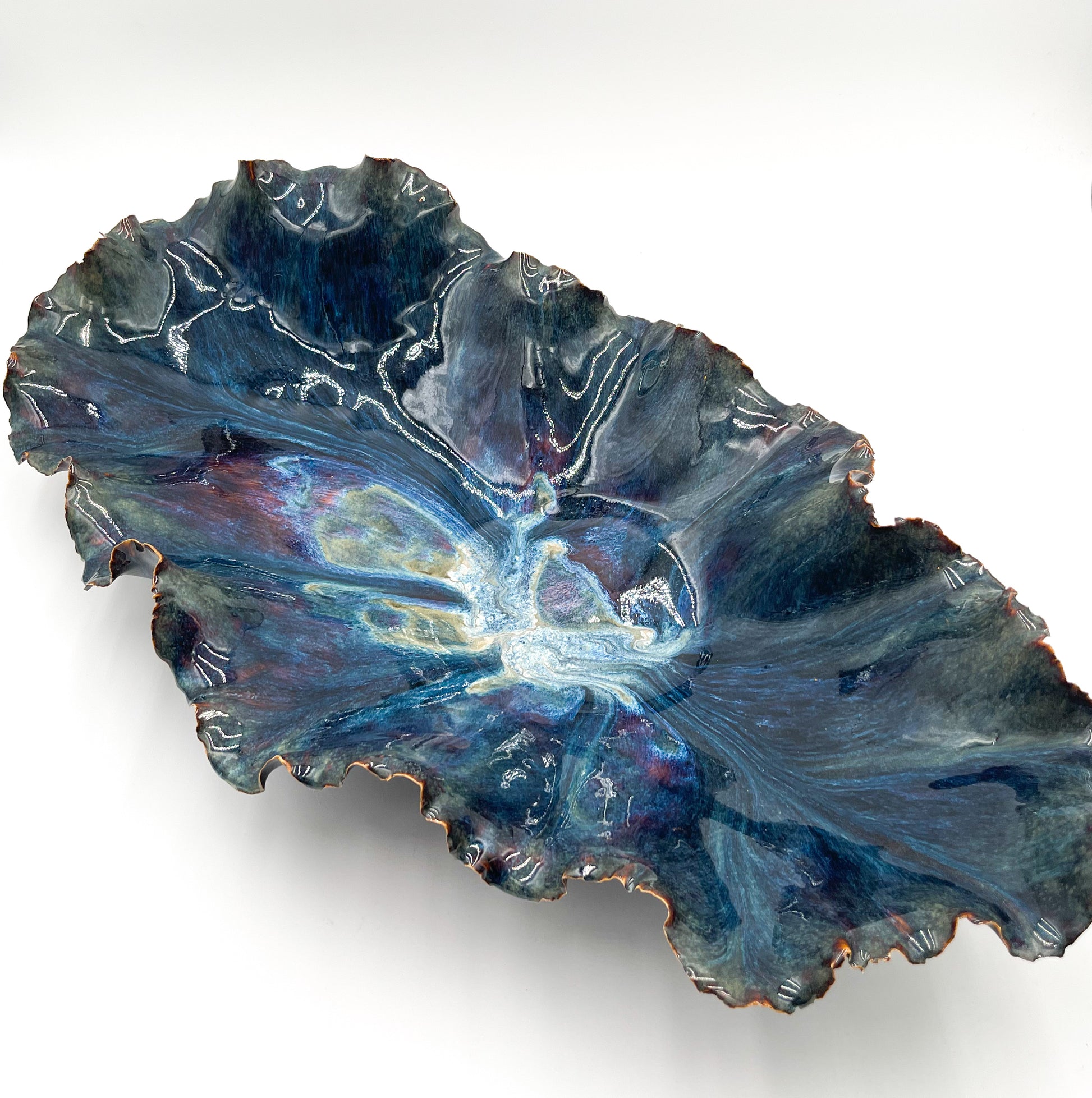 Sculpted entirely by hand and finished with layered glazes, the Midnight Tide Bowl is both sculptural and functional—a stunning statement piece for any interior.